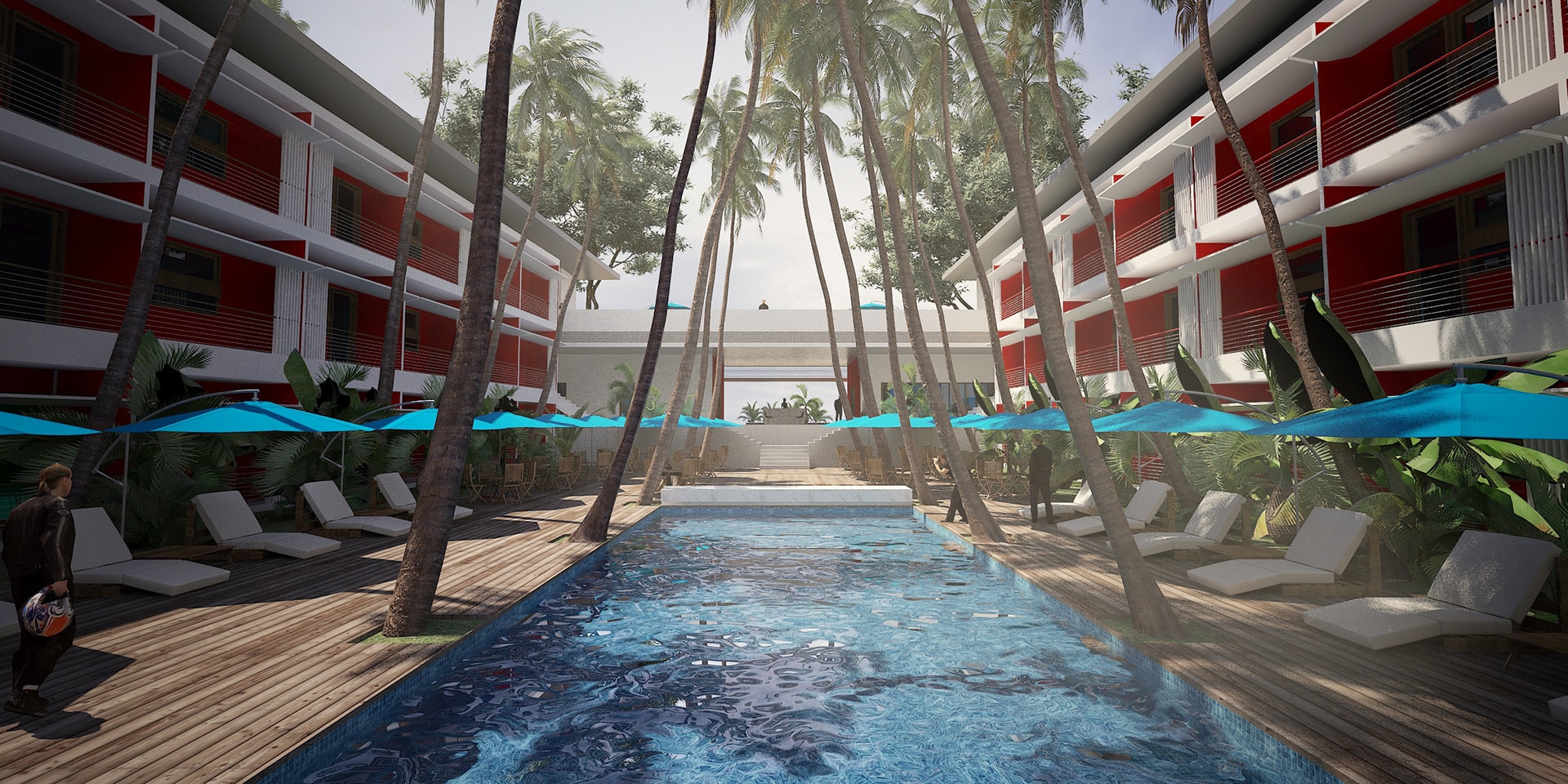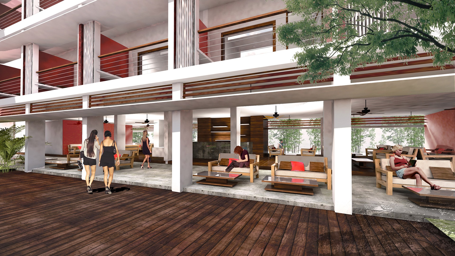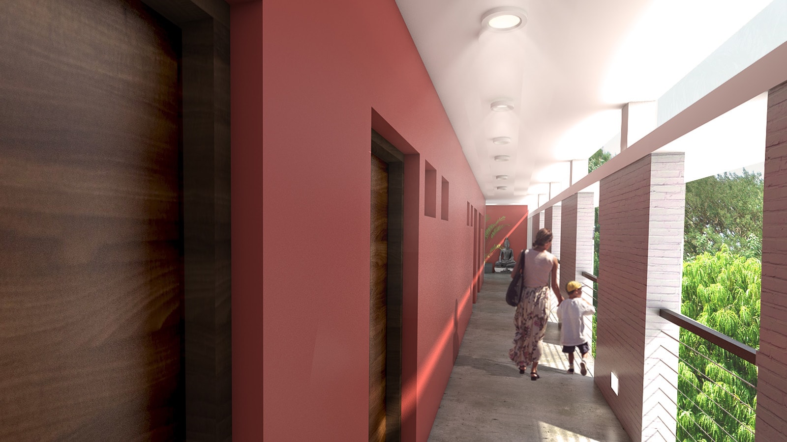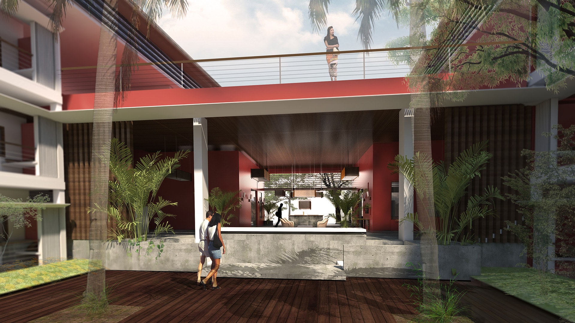 T3 designed all the Hotel building following bioclimatic principles: double ventilated roof, large overhangs, balcony use as sun protection, sun shade tailor made according to the sun orientation.