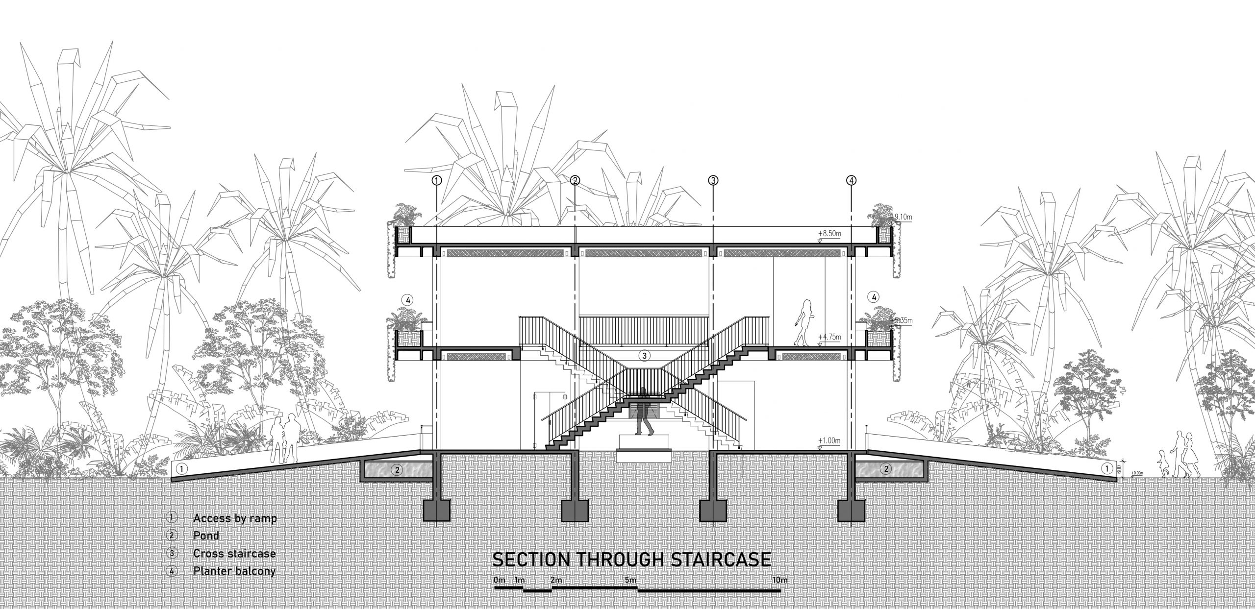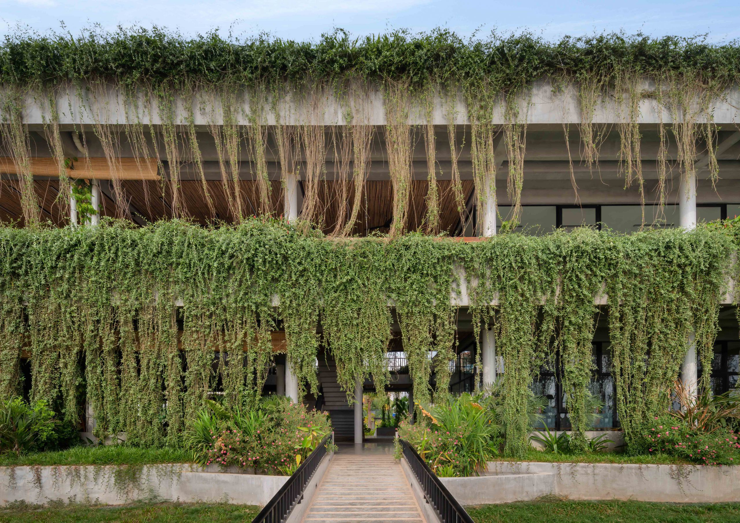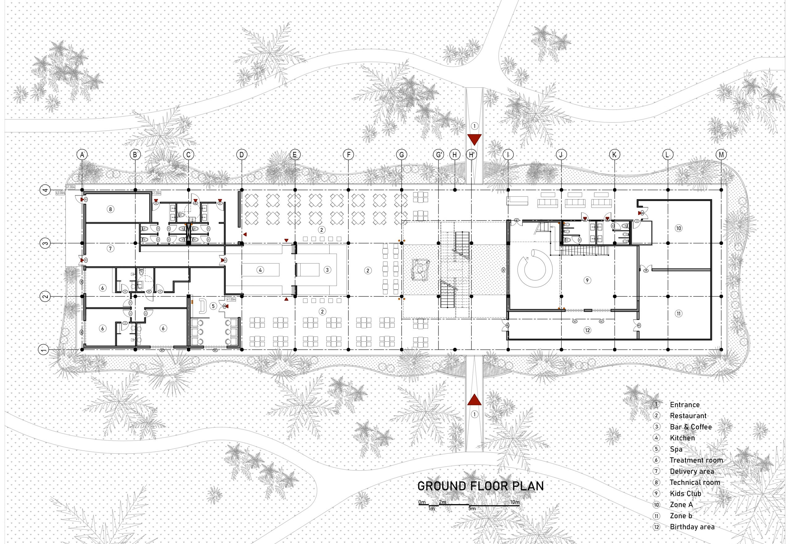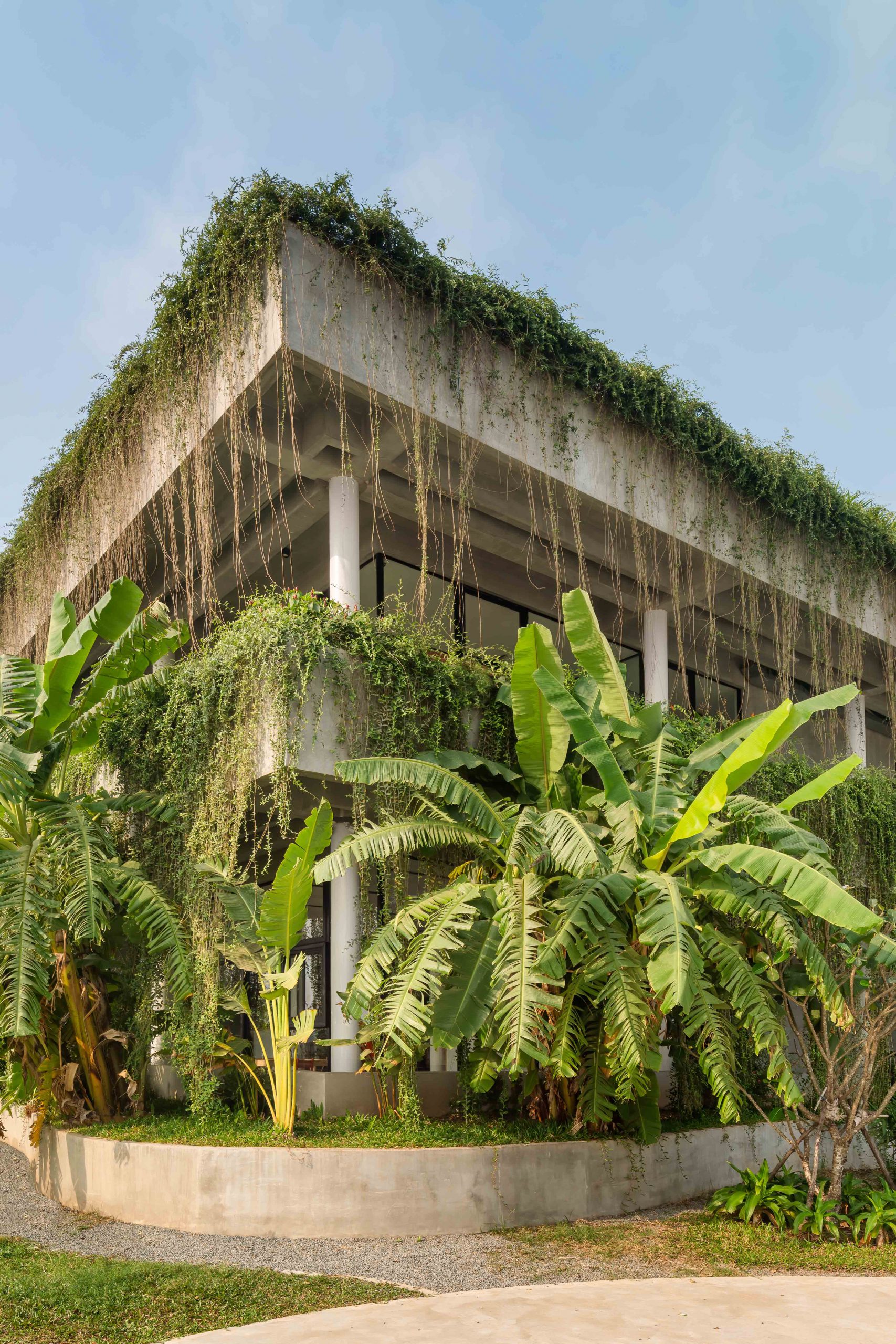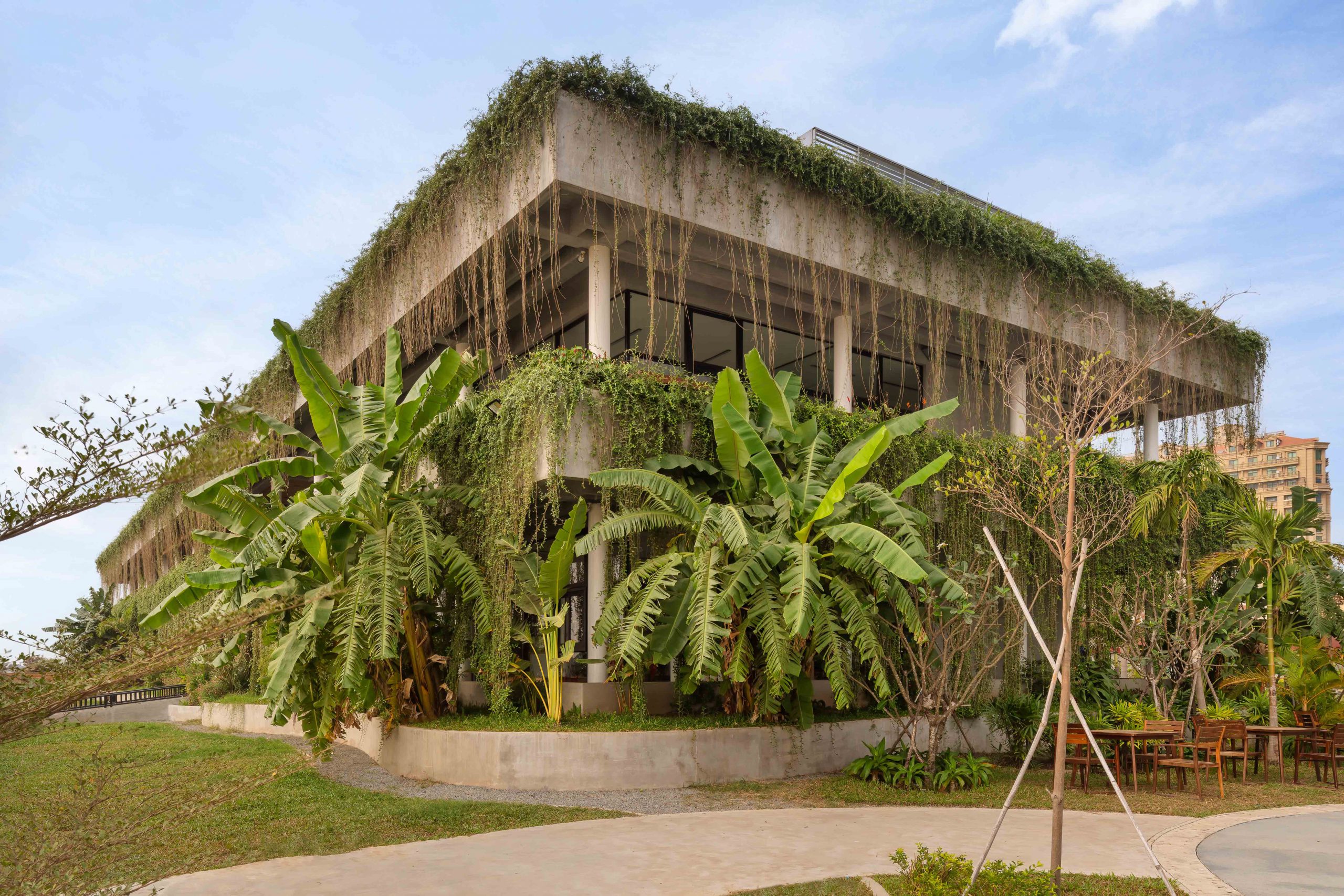 T3 ARCHITECTS designed the Master Plan of the Coconut Club Recreational Park of Phnom Penh dedicated to kids, teenagers and families. T3 also designed the main building proposing different activities around hospitality, entertainment and wellness: organic restaurant, river view bar, spa, kids club, event area. All around the building, the idea is to create outdoor activities like bicycle tour, water games area, slides through tropical plants, observation tower… Of course, T3 design follows bioclimatic principles to avoid the use of air conditioning (except some specific areas like spa and meeting room) with a building located between the riverfront and a lush tropical garden, increasing cross ventilation. Sun protection and overhangs have been tailor-made to optimize the control of natural light and heat, both to improve customers comfort and reduce energy consumption. This building is also a nice manifesto of a smart biophilic architecture, bringing nature around and into the building, but without increasing the structure of the building, as most of the plants and trees directly grow into the natural soil around the building. The maintenance is easy and the plants can develop easily without complicated irrigation system; Low tech solutions are very often the best on long term perspective! The Coconut Club is already a famous place to relax for People from Phnom Penh, especially families and kids!