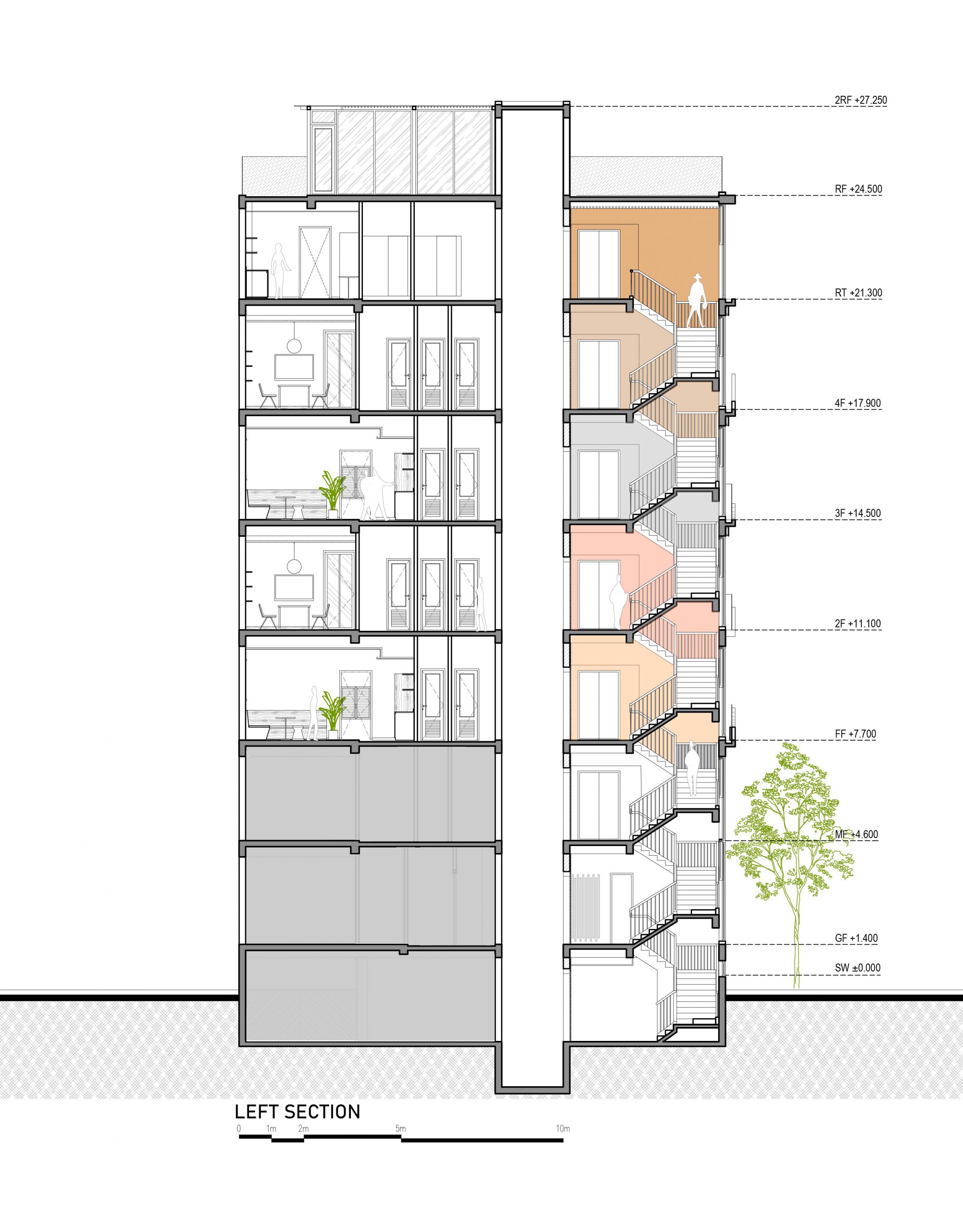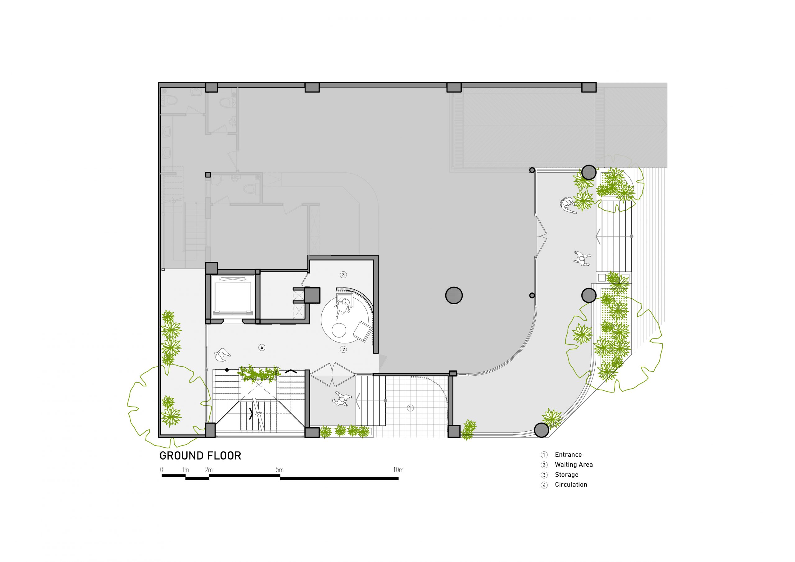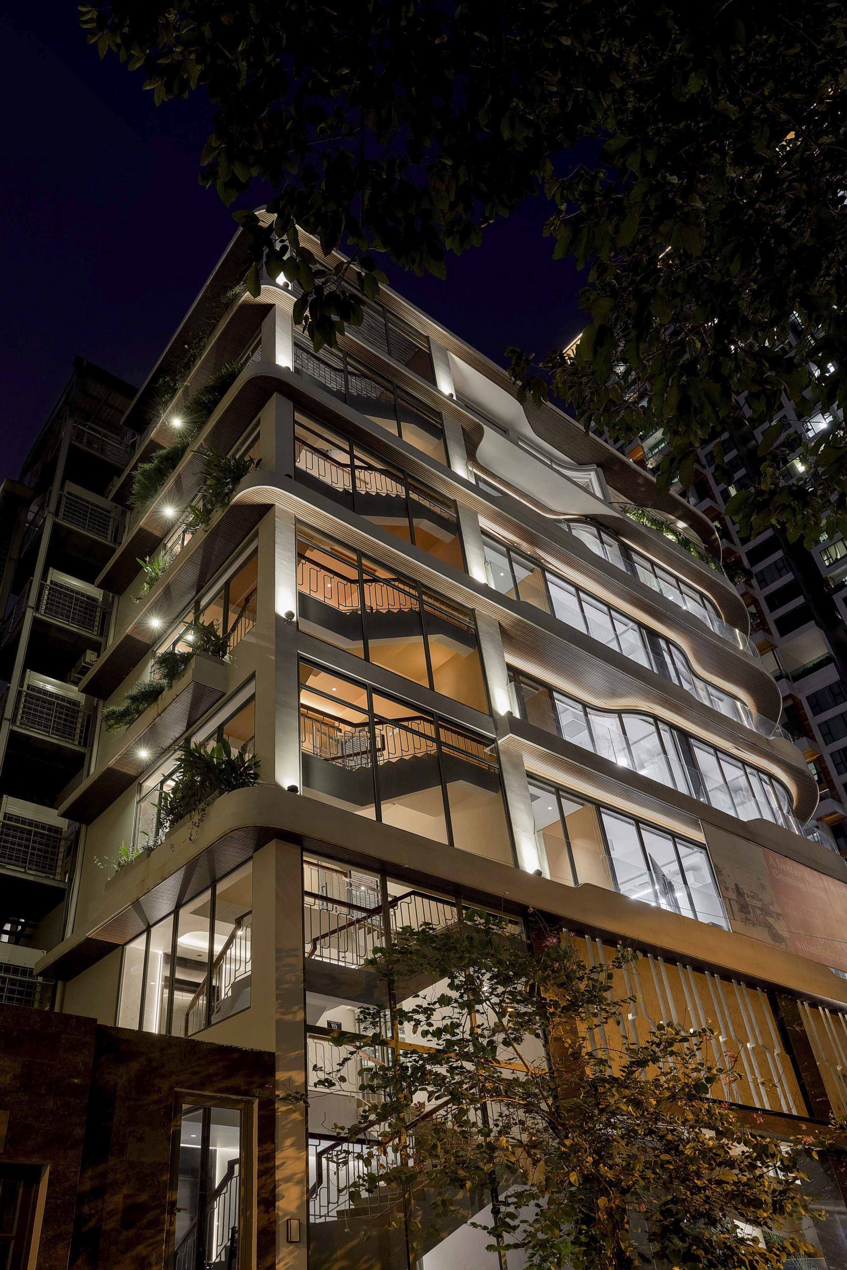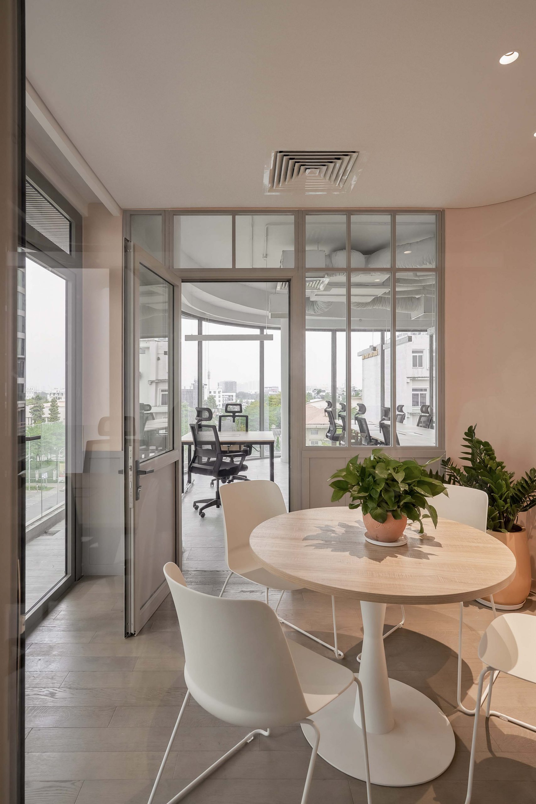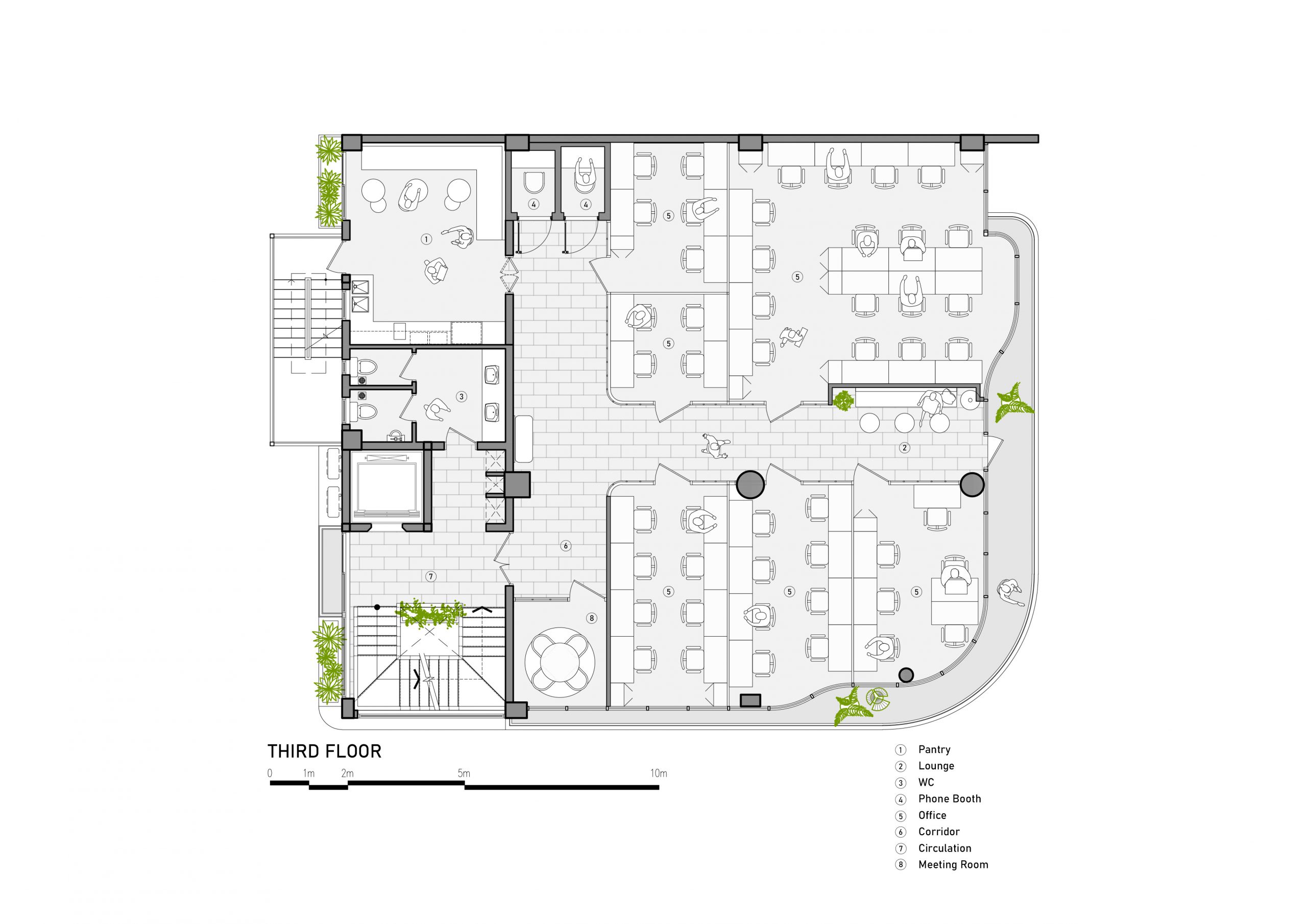 The rooftop area features flexible spaces and a multi-purpose room that can be fully open to the surrounding tropical garden, offering a sense of privacy and tranquility, perfect for informal meetings or moments of restoration.