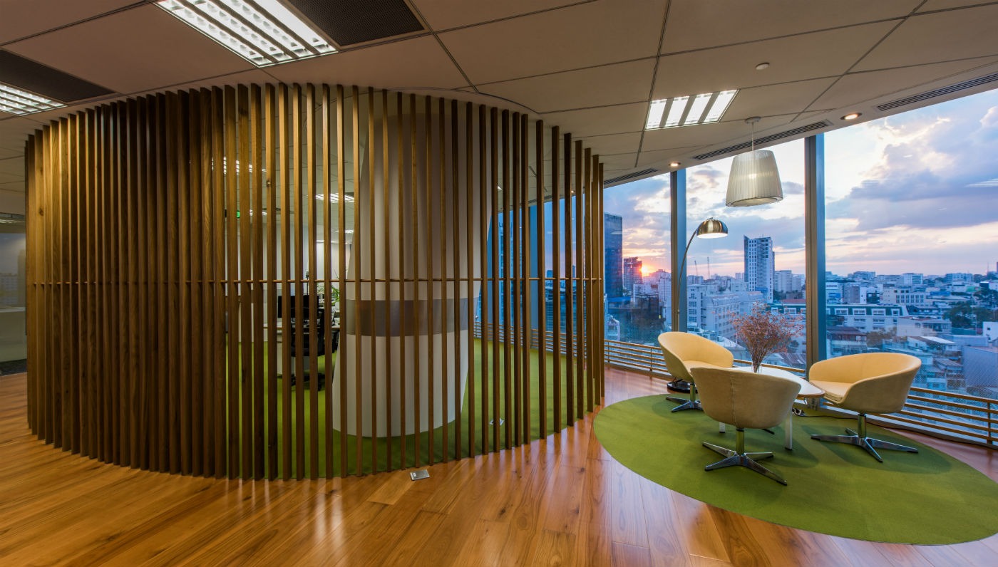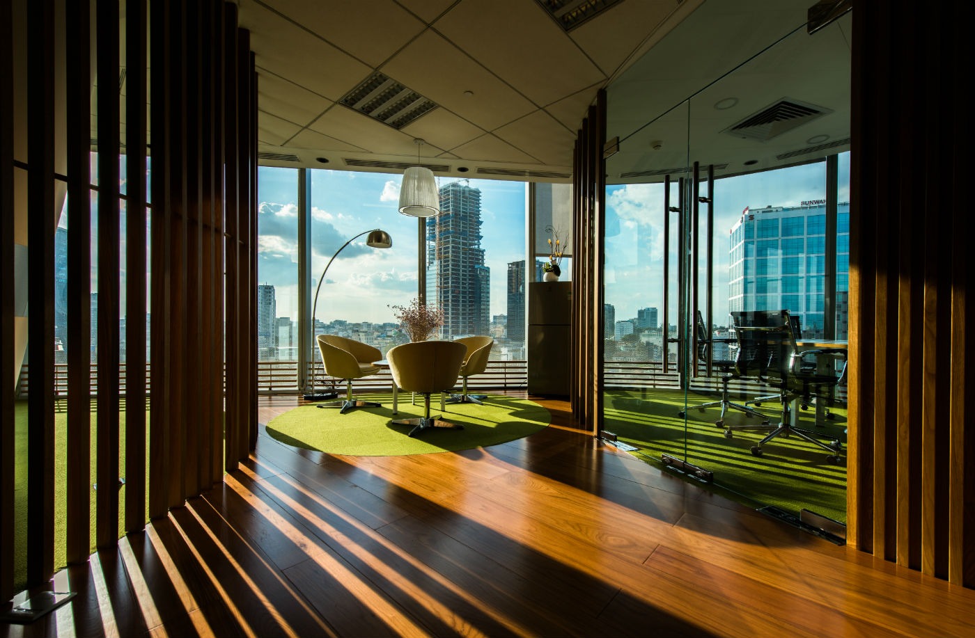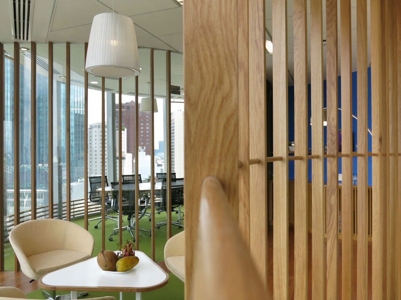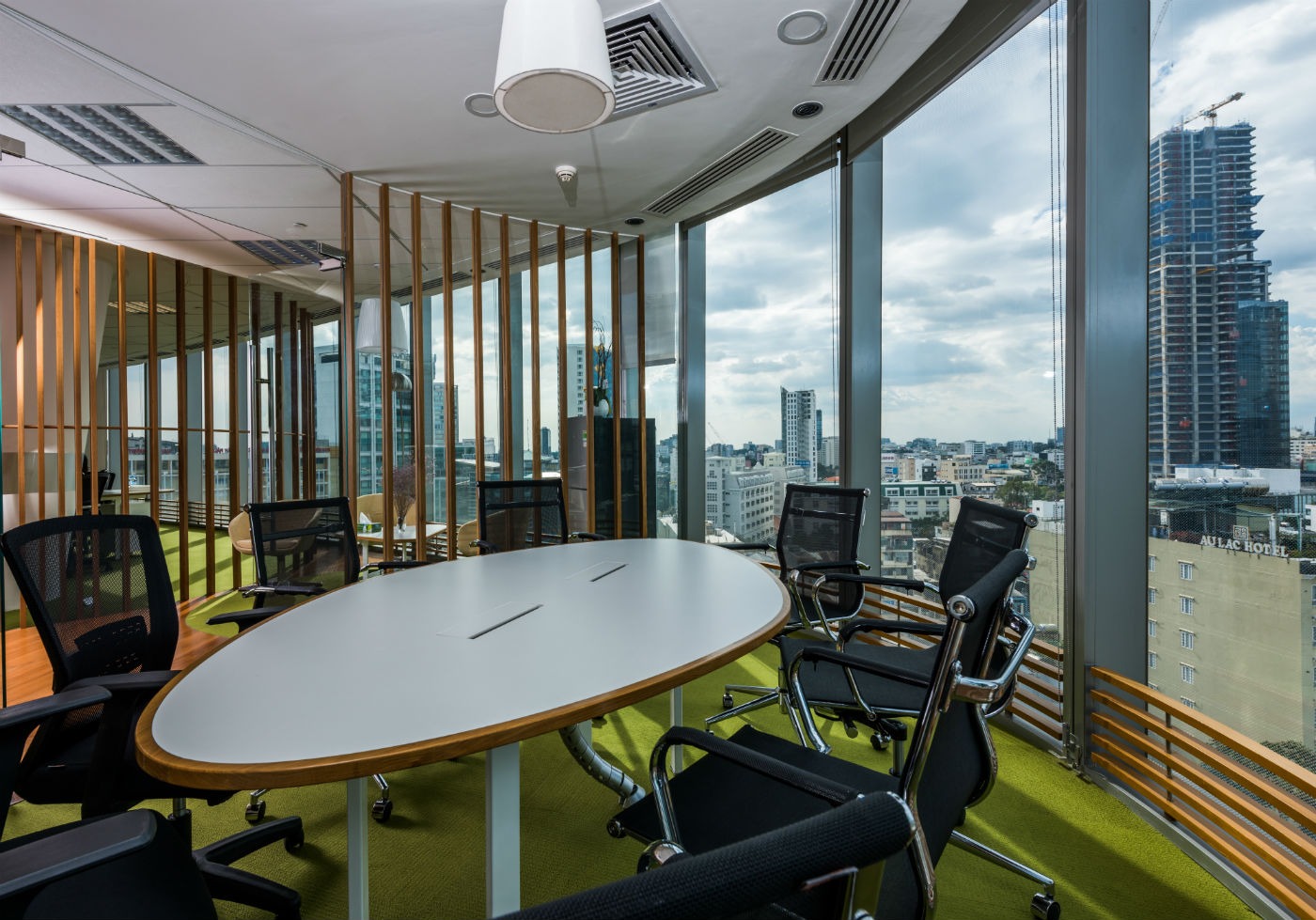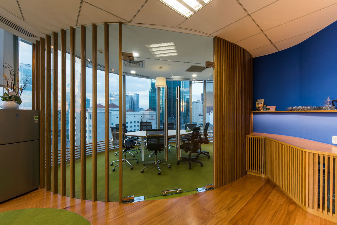 T3 has been selected to design the Office Headquarter of the future Fulbright University Vietnam located at Bitexco Tower, in the city center of Ho Chi Minh City. The main design idea was to propose an office with different rooms for each use: meeting with 4-6 people, single skype meeting, board meeting, admin office and some coffee corner to welcome guests. Color palette is composed by white (clear), green and natural wood (nature) and blue Klein (reference to Fulbright logo). Shape of the desks are a reference to Bitexco tower shape, with a large planter in the middle of the desk to bring Nature among employees.
