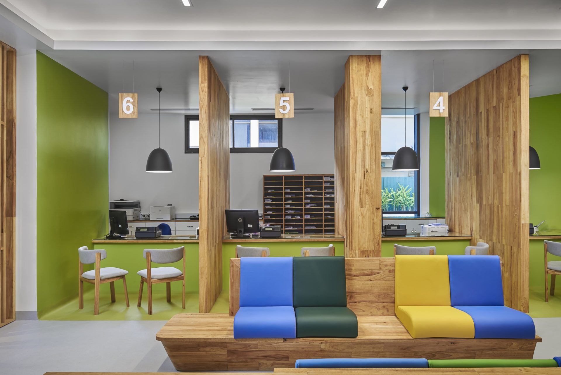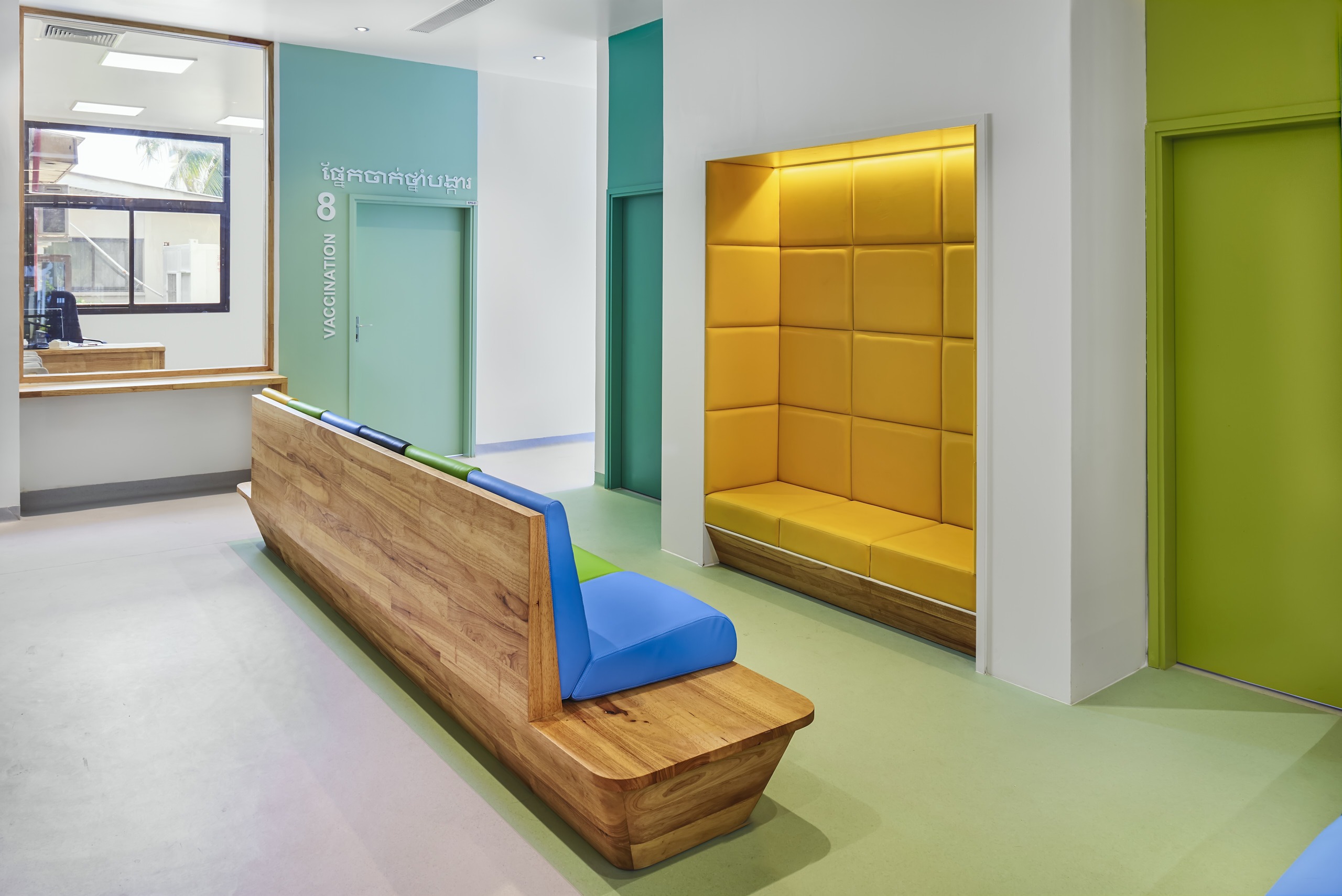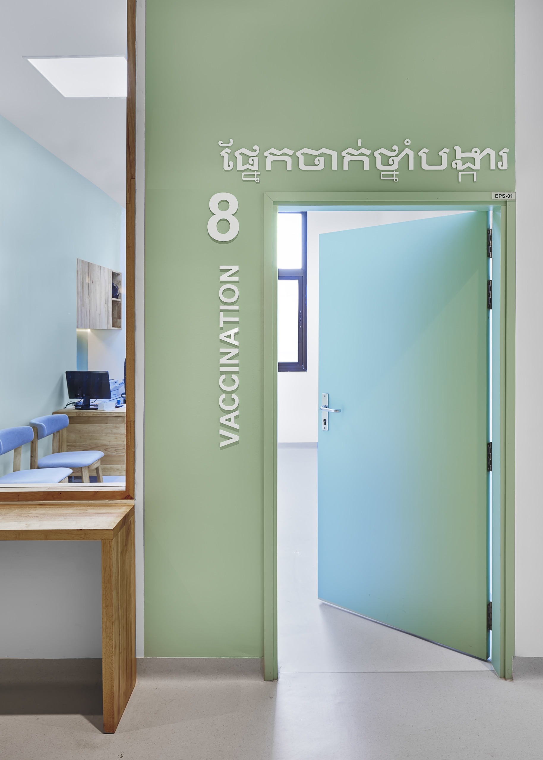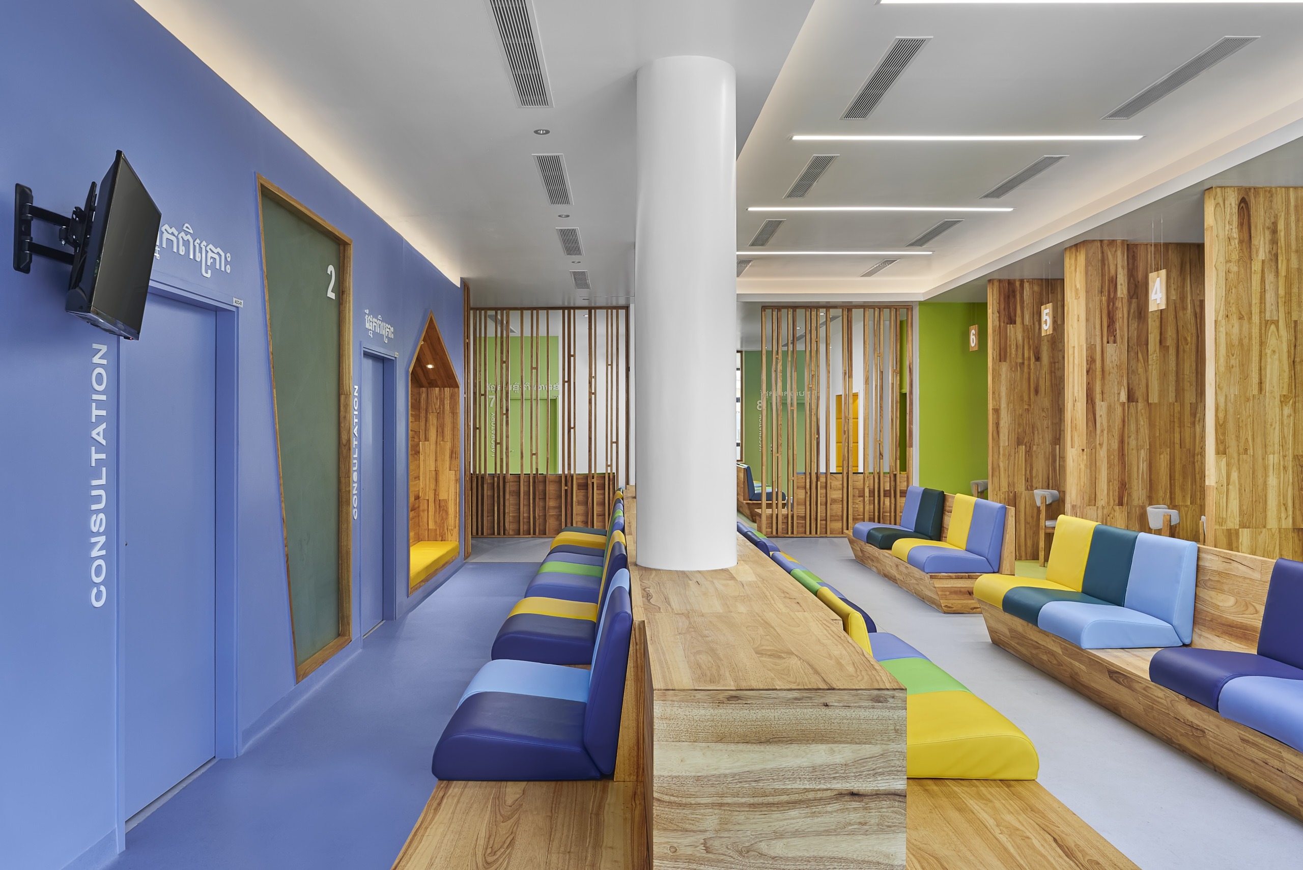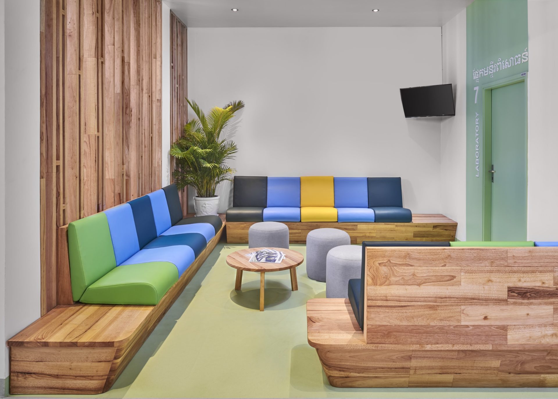 T3 Architects designed the Pasteur Institute Cambodia as to bring a new look to this famous Healthcare institution in Phnom Penh. From an “old style” local clinic, T3 Architects turned the building in a modern and clean international healthcare Center by proposing a full refurbishment and new interior design. T3, in collaboration with Pasteur Team, has focused a lot on the Layout’s consistency to make the place “easy” both for doctors and patients… T3 selected the finishing materials as to bring wellness: hardwood (natural), lineoleum floor (hygienic); T3 also decided to go for a colorful interior, as to help patients to feel confident and welcome when entering the clinic. Lighting have been specifically designed to bring enough lux, but also a place warm. Privacy and confidentiality have been studying carefully during design process.