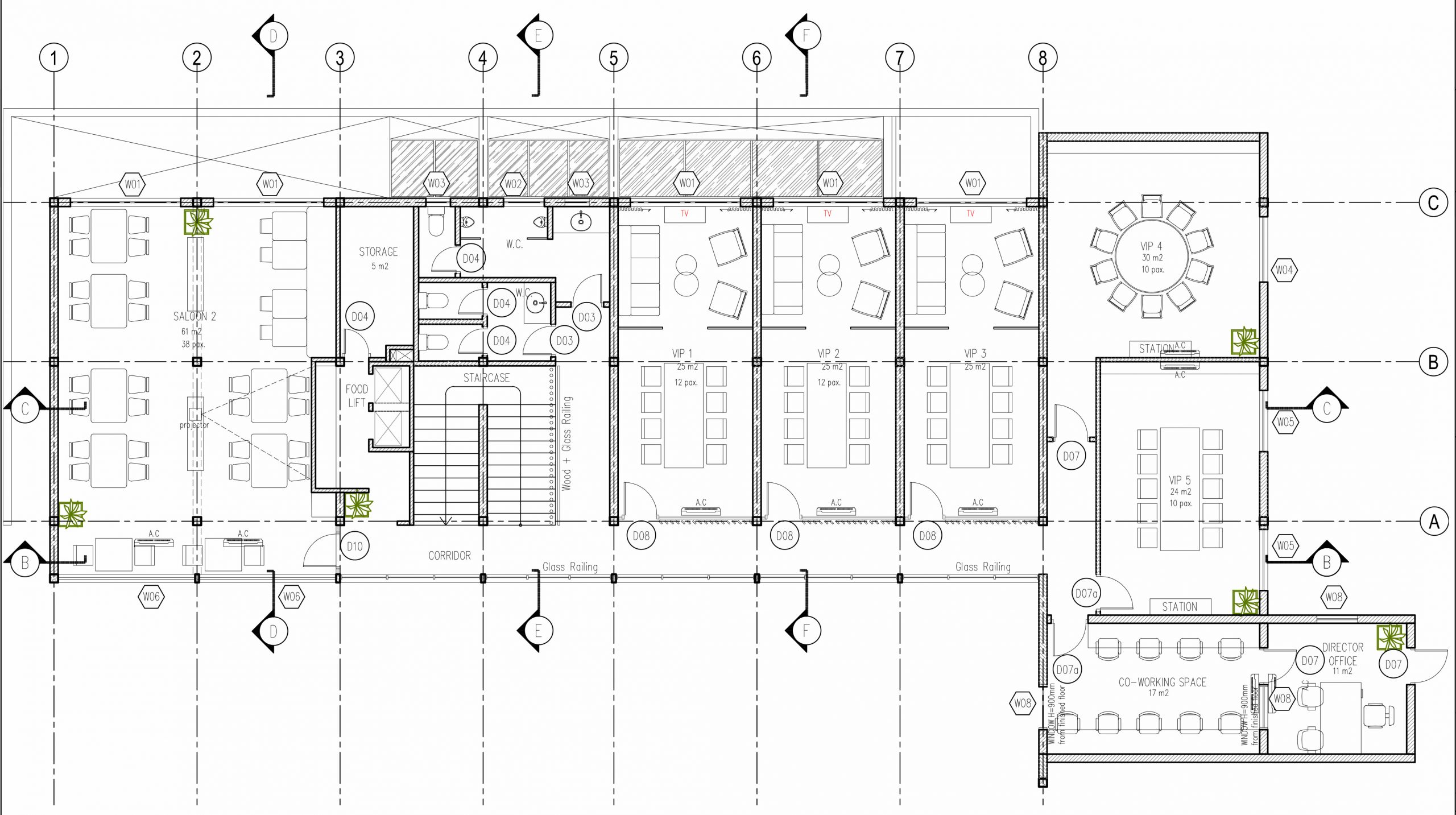 Then, T3 decided to limit as much as possible energy consumption during operation stage by reducing the number of sqm with AC (all circulations, kitchen and bar are naturally ventilated). Then rooms with AC have been properly insulated (ceiling) and windows have been protected from direct sun to avoid overheating.