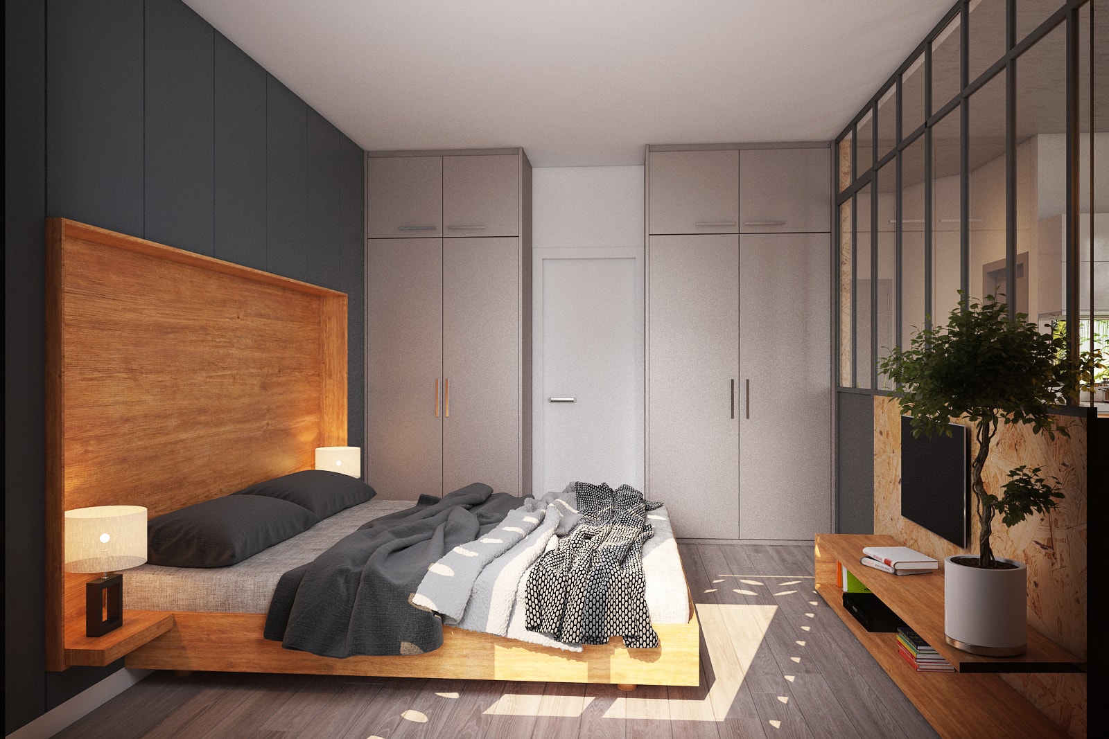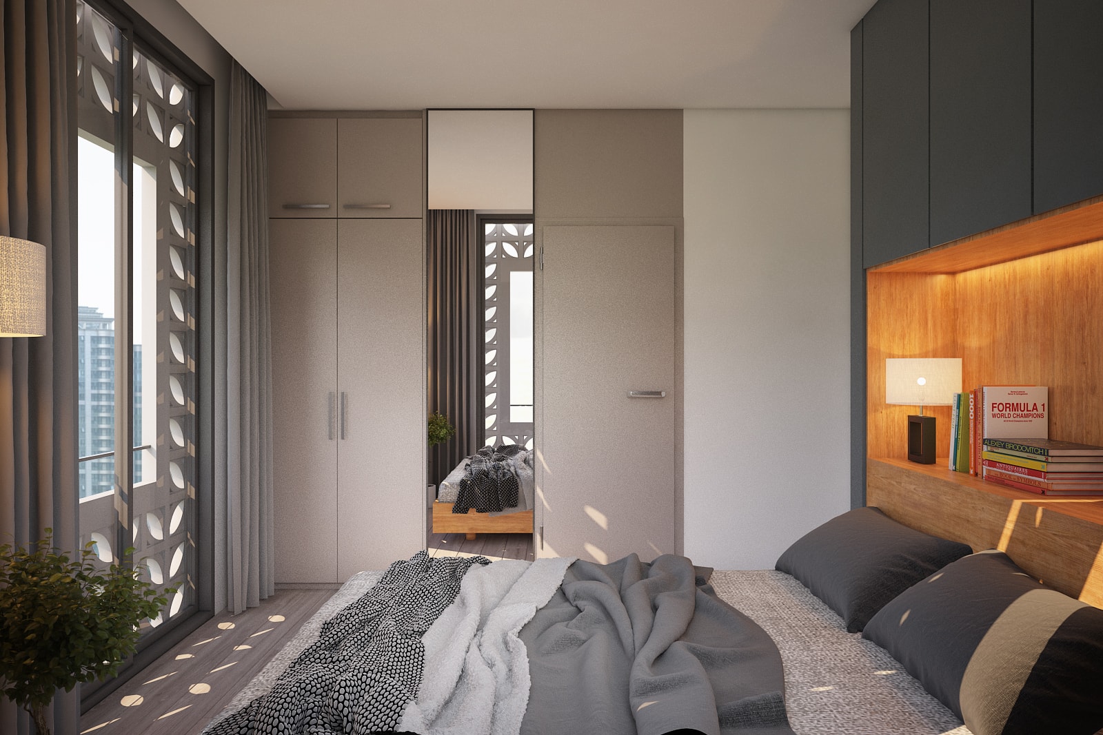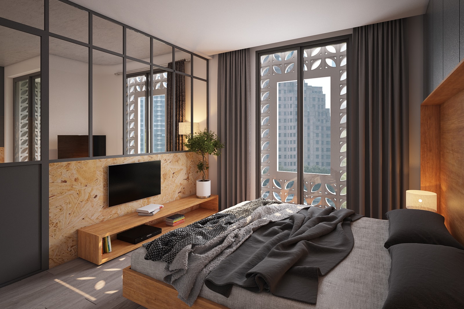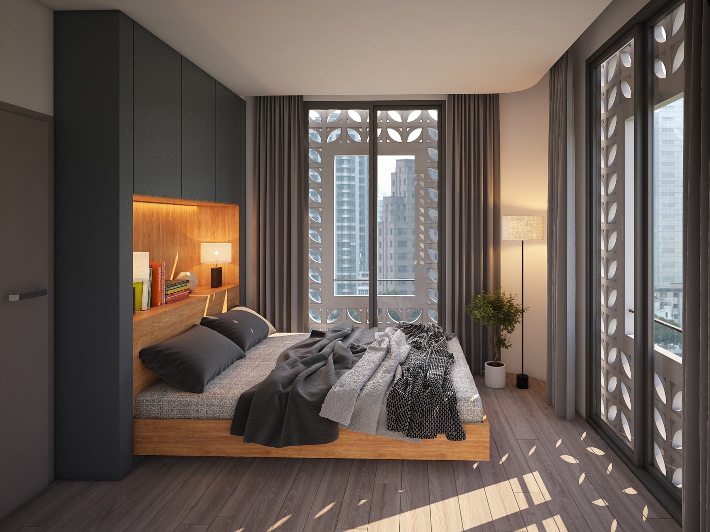 A Vietnamese Client asks for T3 to design a Service apartment Building in Danang. He wanted the expertise of T3 for the main Concept but also on all the Bioclimatic aspect: natural ventilation, sun protection, optimize the natural light, bring plants and trees (green roof, terraces, balconies…) and propose some additonnal equipments to improve energy saving (hot water solar panels mainly). Client being very opened-mind and having clear idea of what he wanted, T3 has designed the all layout and the original facade of the Building and all Interior Fit Out spread over 7 different levels (Semi-basement + Ground Floor with Reception, small Office and gym room + 10 apartments spread over 5 floors + 1 roof top ). The final result is a contemporary tropical design, with an original touch given by the ventilation concrete blocks… On the large roof top, T3 designed a nice infinity pool (facing the sea) surrounded by a wooden deck and tropical plants, as well as a common area to organize barbecue and small parties. All interior design have been made with locally sourced materials (cement tiles, OSB panels, ventilation concrete blocks…), but with a clear contemporary style, mix of minimalist and warm feeling. The result is a very unique Green Building, with high energy efficiency rate, in perfect line with Client’s expectations.