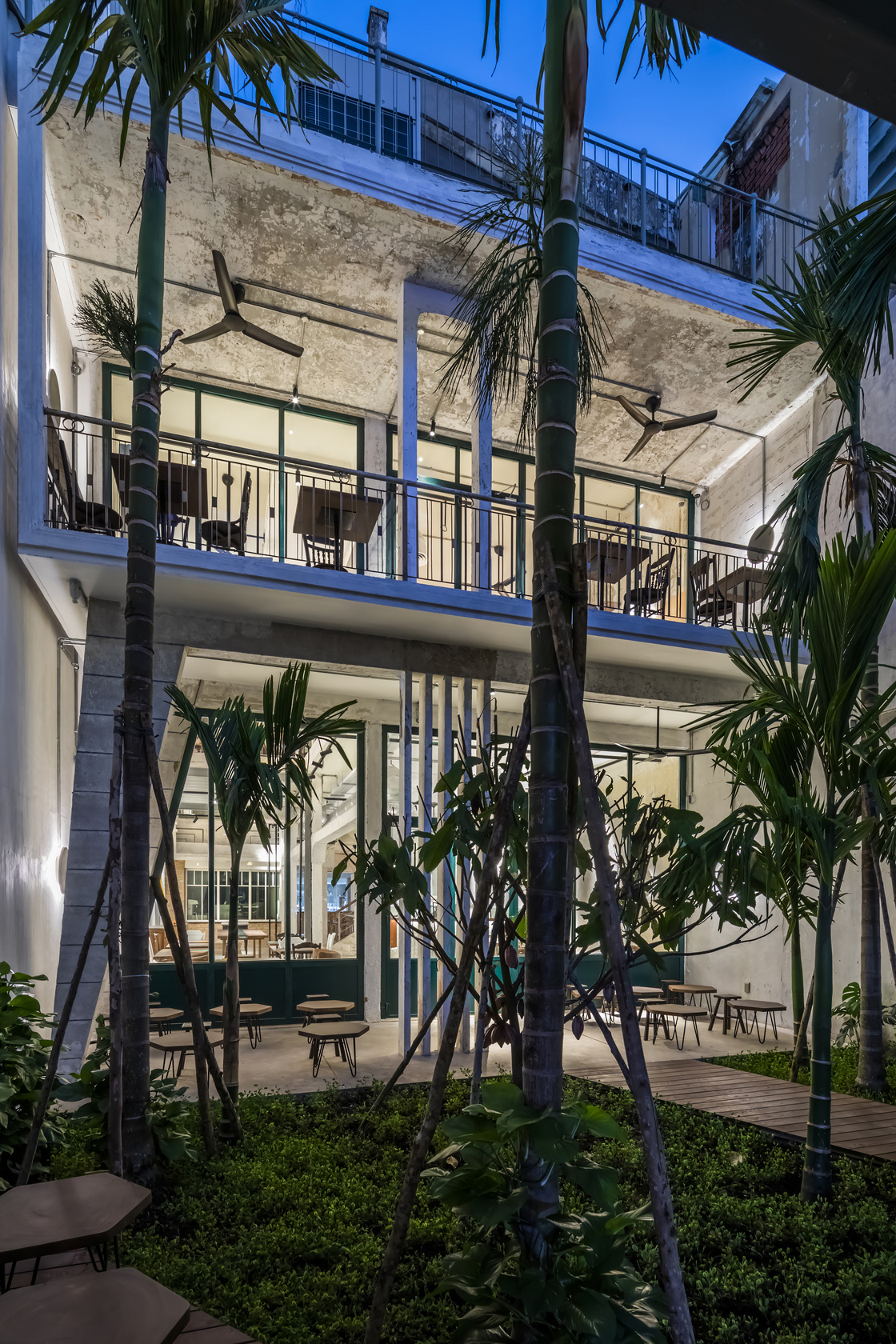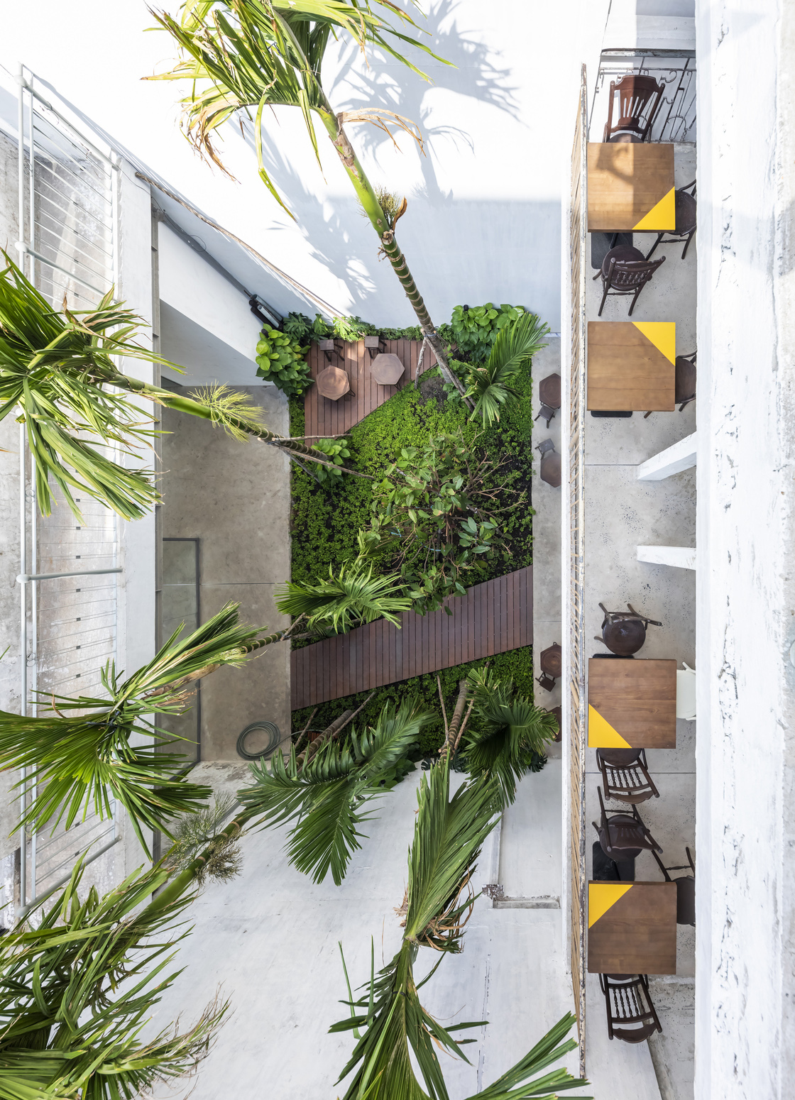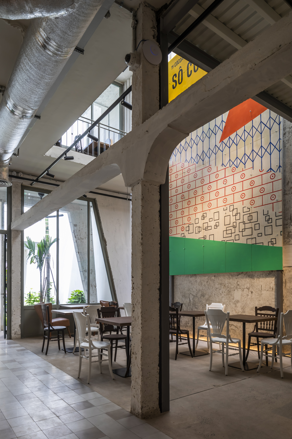 The main design intention of T3 Team was to recover the existing modernist Villa from the 50’s and give it a second life dedicated to the Cocoa & Pastry. A place for Vietnamese, to reconnect with their heritage and to realize the quality of their cocoa produced in Mekong Delta. This elegant villa was totally invisible when we started the design, as decades of ugly industrial finishing materials were covering all walls, ceiling, Facades. The place was totally dark and sad… T3 decided to remove a part of the roof and to break some concrete slabs to create a tropical garden, to bring natural light in all the building, and to highlight the architectural elements typical from this period. It is more an “archeological” mission than an architecture and interior design mission. The beauty was there. T3 and the Cocoa Project Team and all partners involved in the project gave all their effort to rediscover and create a peaceful place in the hearth of Saigon…