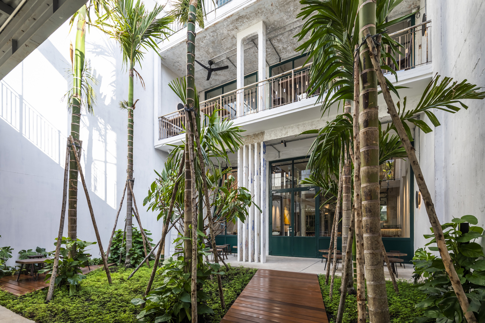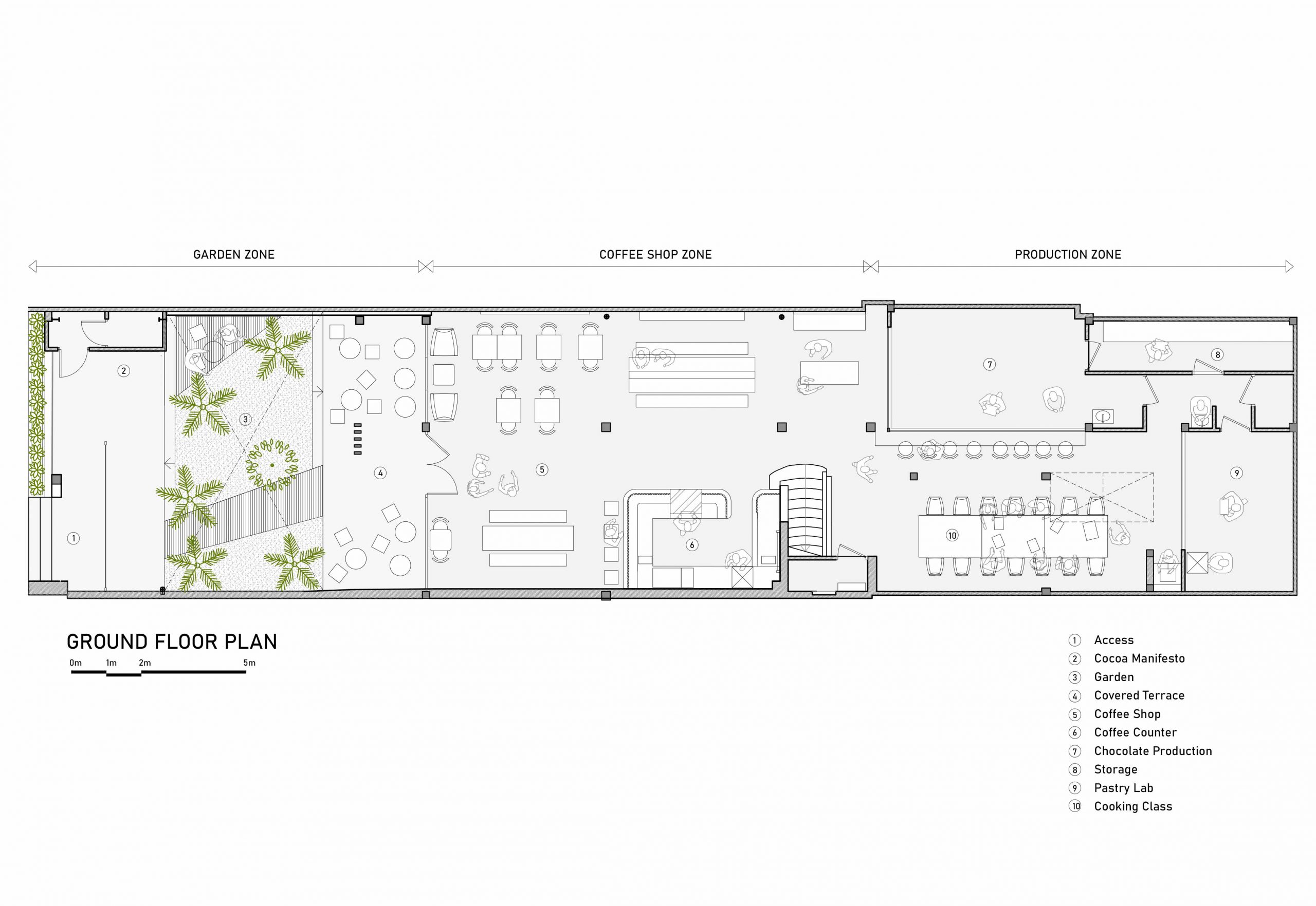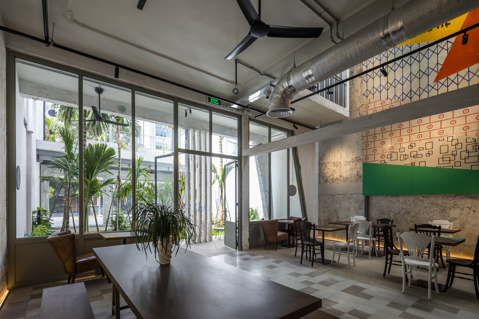 The main design intention of T3 Team was to recover the existing modernist Villa from the 50’s and give it a second life dedicated to the Cocoa & Pastry. A place for Vietnamese, to reconnect with their heritage and to realize the quality of their cocoa produced in Mekong Delta. This elegant villa was totally invisible when we started the design, as decades of ugly industrial finishing materials were covering all walls, ceiling, Facades. The place was totally dark and sad… T3 decided to remove a part of the roof and to break some concrete slabs to create a tropical garden, to bring natural light in all the building, and to highlight the architectural elements typical from this period. It is more an “archeological” mission than an architecture and interior design mission. The beauty was there. T3 and the Cocoa Project Team and all partners involved in the project gave all their effort to rediscover and create a peaceful place in the hearth of Saigon…