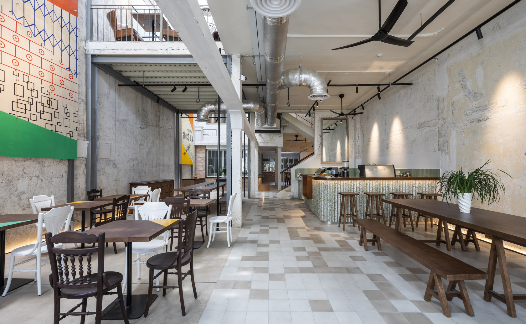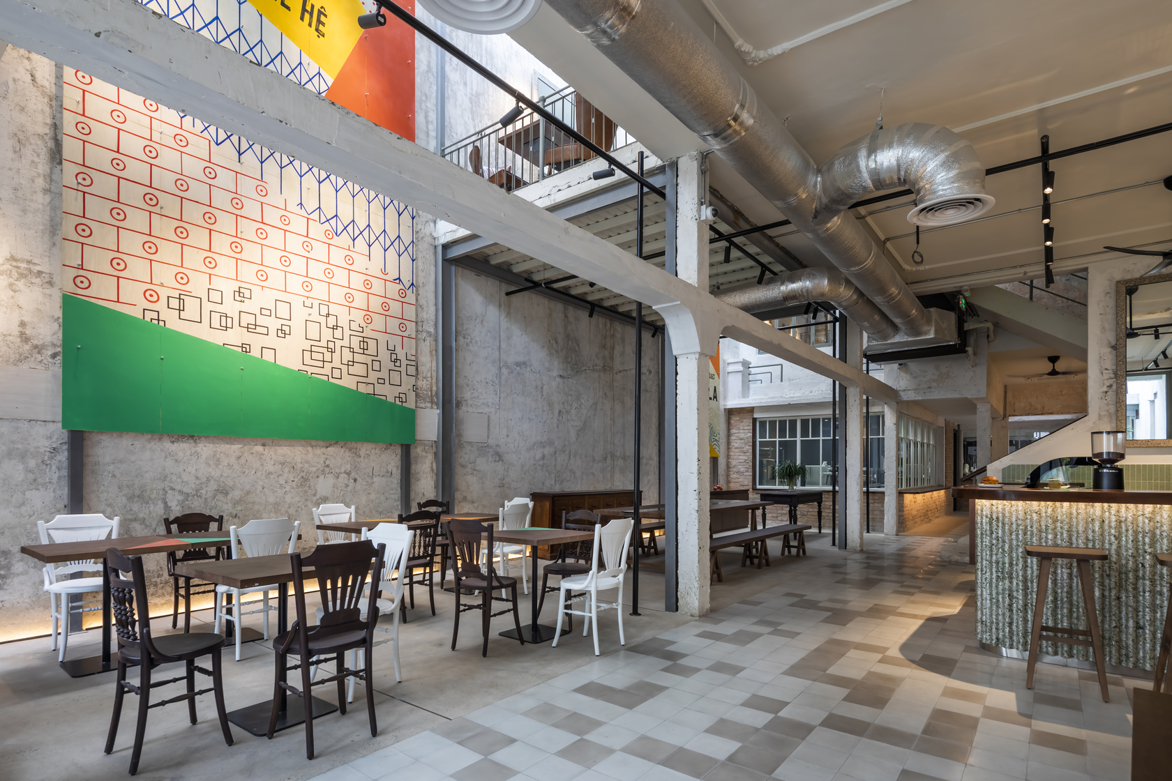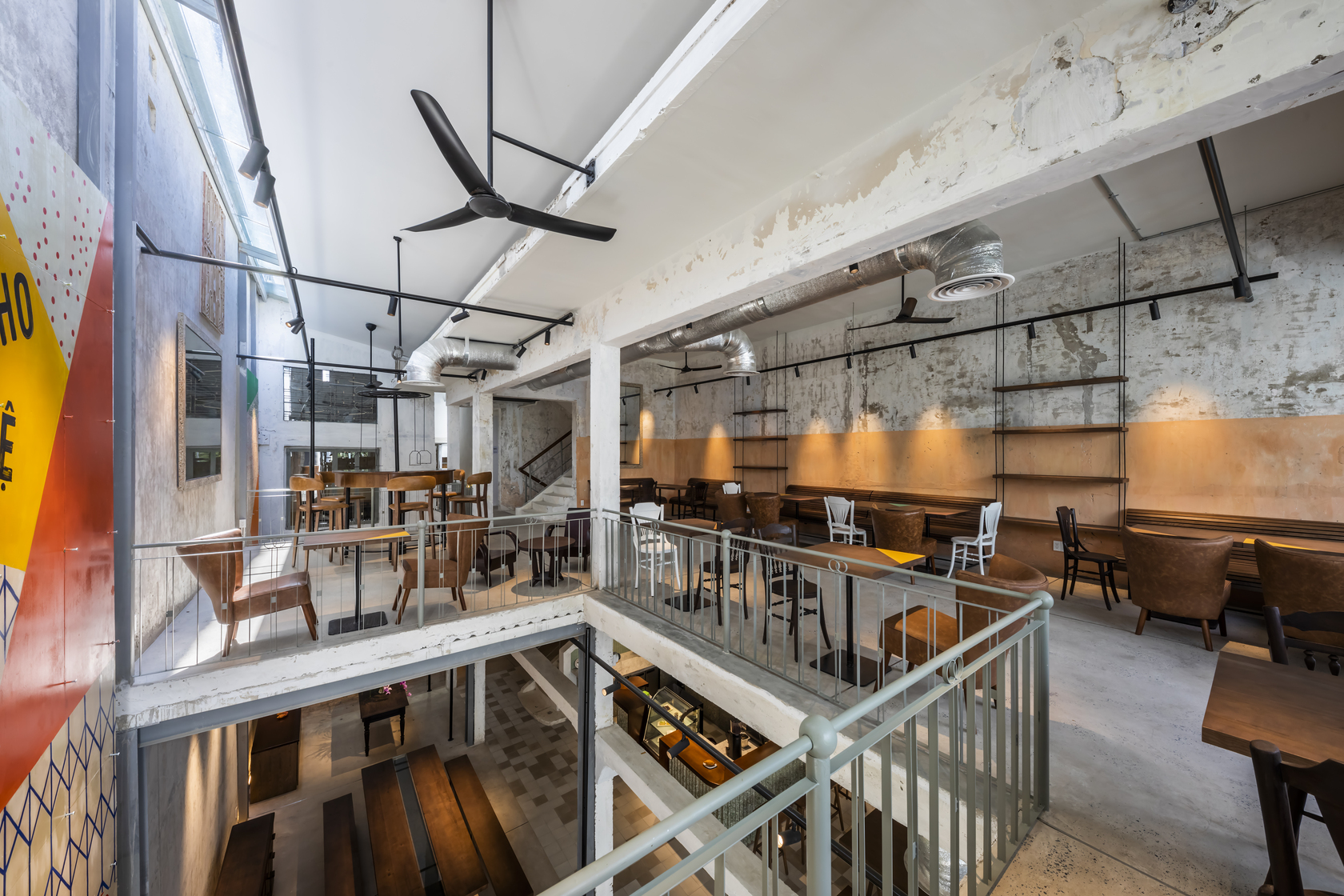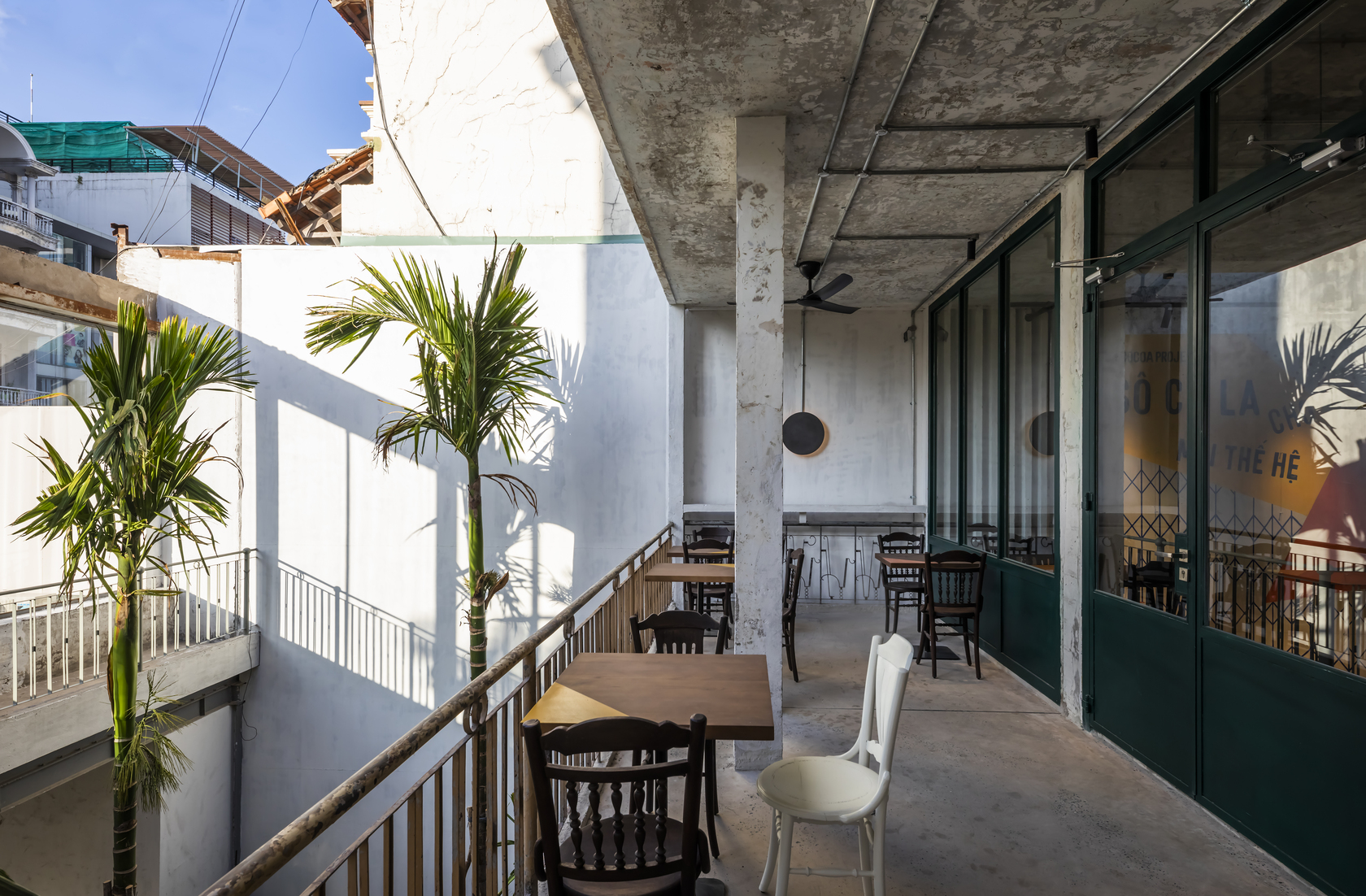 When T3 Team first visited the place, we saw a nice staircase in terrazzo, as well as some cornices on the ceiling, both typical from the modernist period. That’s why we recommended to select this location to the client to create their first Cocoa Project place, as the architectural heritage was in line with the authenticity we were all looking for. We proceeded step by step, removing layer after layer, discovering old handrails, vertical concrete louvers, old layers of lime painting. And we decided to preserve all to suggest the past and the history of Saigon.