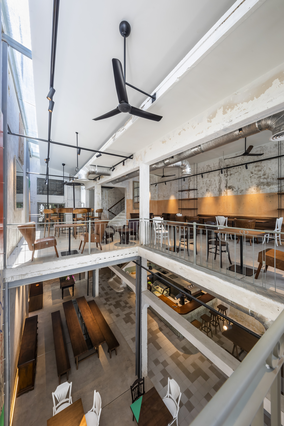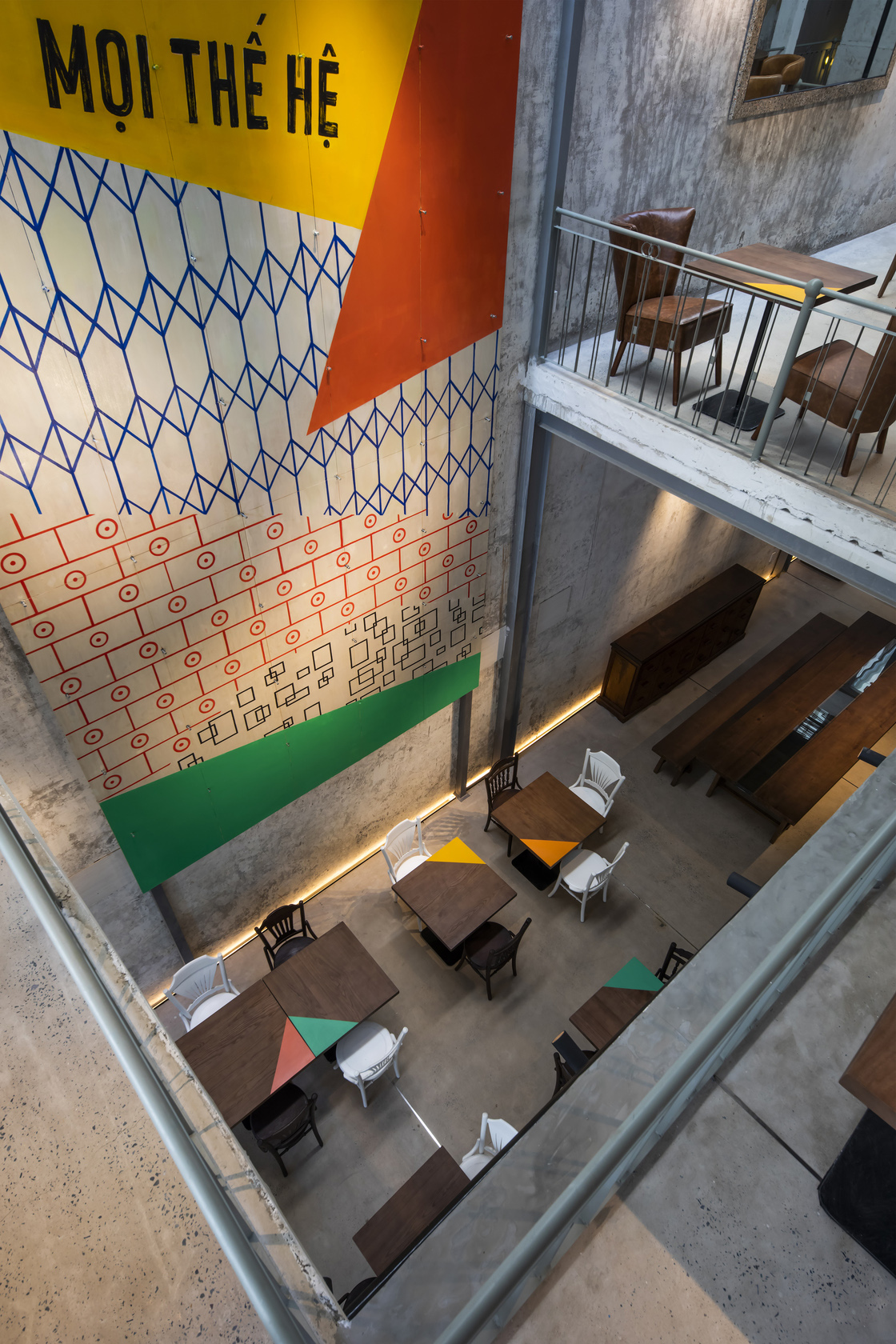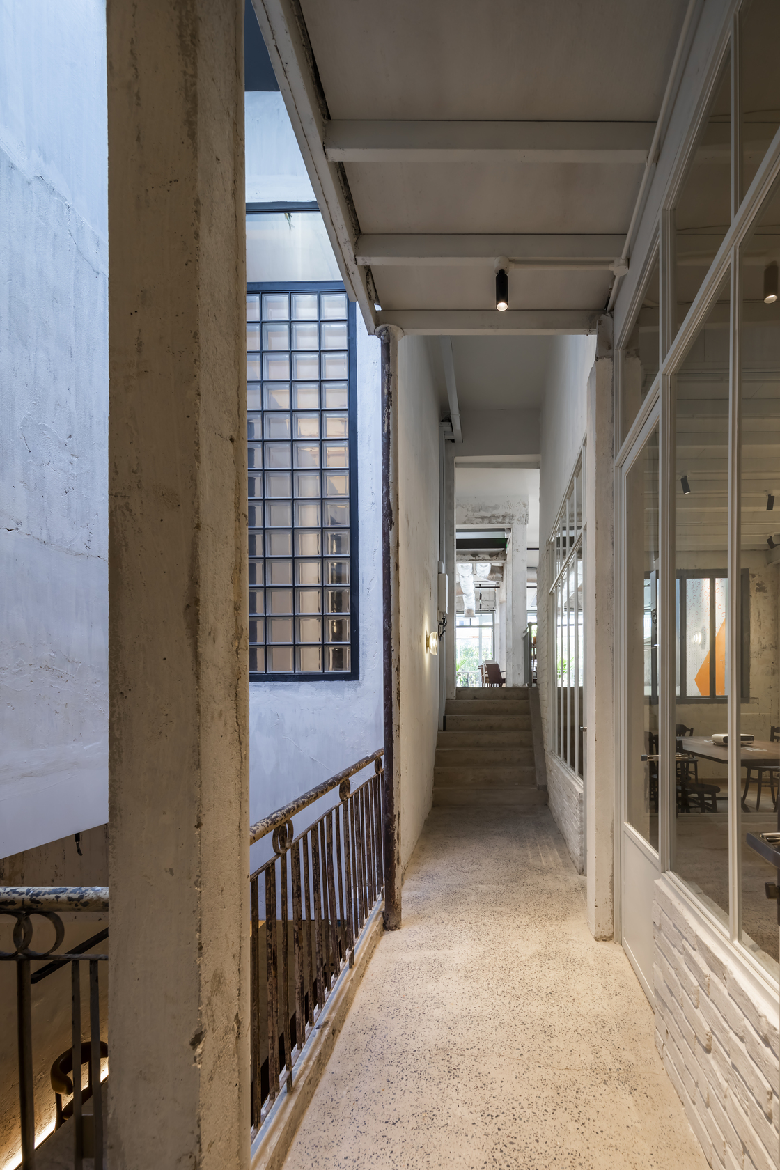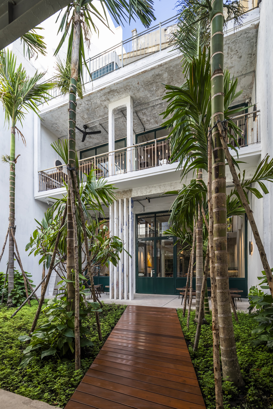 When T3 Team first visited the place, we saw a nice staircase in terrazzo, as well as some cornices on the ceiling, both typical from the modernist period. That’s why we recommended to select this location to the client to create their first Cocoa Project place, as the architectural heritage was in line with the authenticity we were all looking for. We proceeded step by step, removing layer after layer, discovering old handrails, vertical concrete louvers, old layers of lime painting. And we decided to preserve all to suggest the past and the history of Saigon.
